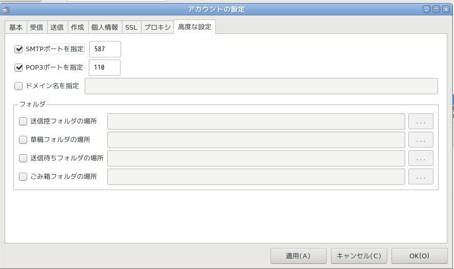 設定画像の右端にポートの設定があります。それをクリックするとポートの設定画面が出てきます。POPとSMTPに マークします。右側にポートの