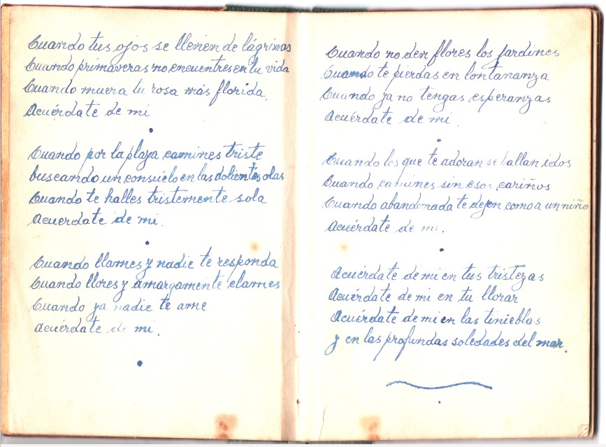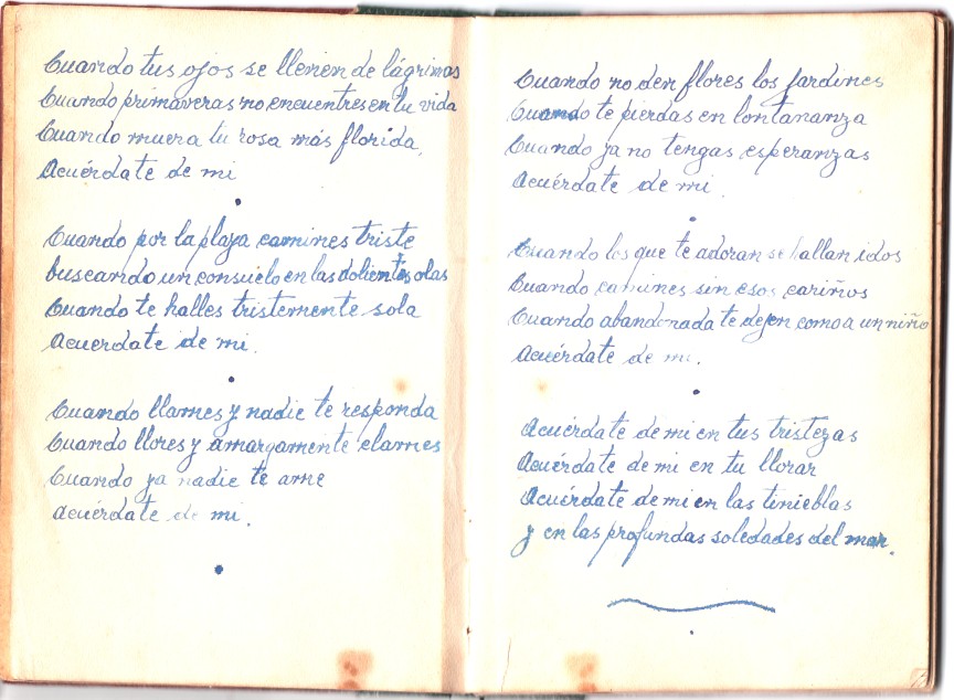 marlhori には、知り合った時から小さな本と言うかマジョリさんの詩集があったのです。仮に el Libro de Marlhori と言いましょう。小さな字でスペイン語で書いてあります。知り合って病気の時