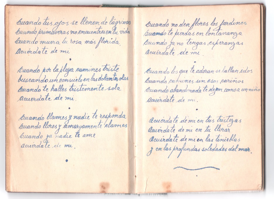 marlhori には、知り合った時から小さな本と言うかマジョリさんの詩集があったのです。仮に el Libro de Marlhori と言いましょう。小さな字でスペイン語で書いてあります。知り合って病気の時